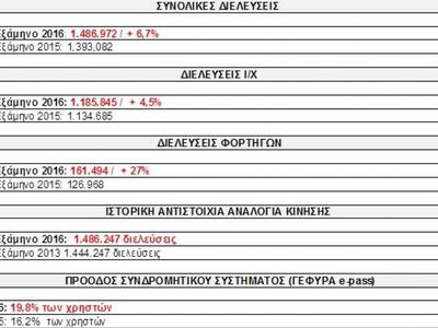 Πολύ ενδεικτικά είναι τα συνολικά ποσοστά της κίνησης μέσω Γέφυρας στο στενό Ρίου – Αντιρρίου που φτάνουν στο 82,72% στο σύνολο, έναντι 79,01% το 2014. Και εδώ η αύξηση στην κίνηση των φορτηγών είναι χαρακτηριστική, αφού βρίσκεται στο 63,77%, έναντι 48,73% πριν δύο χρόνια. Κατά την ίδια περίοδο η κίνηση των επιβατικών κερδίζει 3 ποσοστιαίες μονάδες έναντι του 2014, φτάνοντας στο 83,73% (από 80,73%).