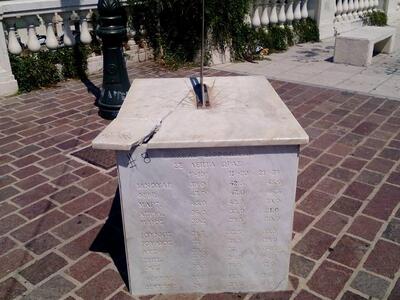 Αυτή είναι η εικόνα του ηλιακού ρολογιού δίπλα απο την πλατεία. Σπασμένο και βανδαλισμένο επί 4 μήνες.