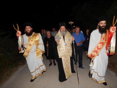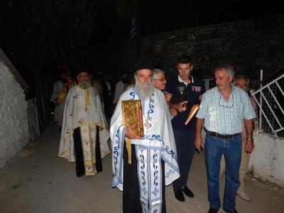 Μετά το πέρας του Πανηγυρικού Εσπερινού πραγματοποιήθηκε Ιερά Λιτάνευσις της Αγίας Εικόνος του Ενδόξου Προφήτου στα σοκάκια του ορεινού χωριού.