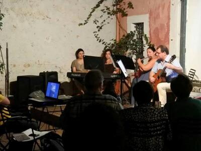 Έπαιξαν η Κατερίνα Σουρμελή στο φλάουτο, η Γωγώ η Βώσου στο πιάνο, ο Γιώργος Παπαδόπουλος στην κιθάρα ενώ συμμετείχε και η Ελένη Τσιλίρα στο τραγούδι. Εκτελέσεις υψηλού επιπέδου και δεξιοτεχνίας και από τους 3 συμπολίτες μας, σε ένα απόλυτα ταιριαστό περιβάλλον με ποιότητα στον ήχο καθώς και μια ατμόσφαιρα που έδινε ακόμα περισσότερο χρώμα στην υπέροχη μουσική του συνθέτη, όπως τονίζεται στο δελτίο Τύπου. Τη συναυλία προλόγισε η Μουσικοπαιδαγωγός Ιωάννα Μιντιλογλίτη, η οποία έκανε και τις απαγγελίες των ποιημάτων.