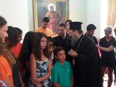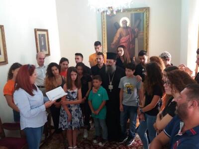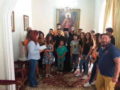 Ὁ Σεβασμιώτατος Μητροπολίτης ὑπεδέχθη μὲ πολλὴ χαρὰ τὰ παιδιά, συνομίλησε μαζί τους, τοὺς συμβούλεψε πατρικὰ, προτρέποντάς τους νὰ ἀγωνίζωνται πάντοτε μὲ τὴν ἴδια ζέση ψυχῆς καὶ καρδίας, τόσο γιὰ τὴν κατάκτηση τῶν ἀθλητικῶν κορυφῶν, ὅσο καὶ γιὰ τὴν κατάκτηση τῶν πνευματικῶν ἀγωνισμάτων.