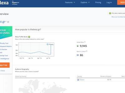 Αν και την ακριβή επισκεψιμότητα καταγράφουν μόνον τα Google Analytics, ακόμα και στην Alexa, που είναι διεθνής μηχανή μέτρησης της επισκεψιμότητας, αλλά οι μετρήσεις της είναι προσεγγιστικές και όχι ακριβείς, ακόμα και στην Alexa λοιπόν, το thebest.gr κατατάσσεται στα 100 μεγαλύτερα sites της χώρας, καταλαμβάνοντας την 86η θέση, μακράν μπροστά από όλα τα Περιφερειακά sites της Ελλάδας και μπροστά από γνωστά καταξιωμένα Αθηναϊκά, (την πρώτη θέση κατέχει η Google και την δεύτερη το facebook). Παρότι και στην Alexa η υπεροχή του thebest.gr είναι σαφής, εντούτοις όταν μιλάμε για απόλυτα ακριβή μέτρηση της επισκεψιμότητας, αυτή την καταγράφει μόνον η Google.