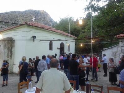 Ἒξω ἀπό τόν Ἱερό Ναό παρετέθη γιά ὃλους παραδοσιακό κέρασμα.