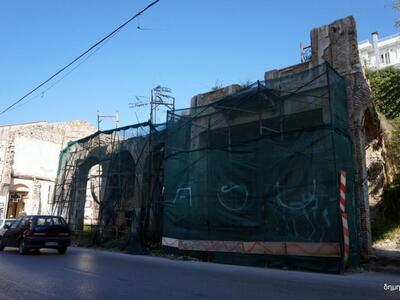 Τη Δευτέρα λόγω της έντονης βροχόπτωσης έπεσε τμήμα της πρόσοψης διατηρητέου κτιρίου, που ανήκει σε τρεις ιδιοκτήτες.