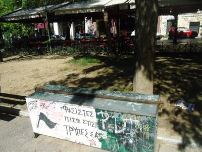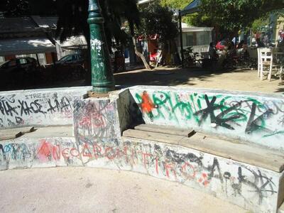 Παρακμιακή εικόνα στην πλατεία Όλγας: Παντού συνθήματα αλλά και "καθιστικά" νέου τύπου