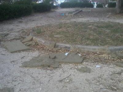 Μετά το ηλιοβασίλεμα επικρατεί μαύρο σκοτάδι και κανείς φυσικά δεν μπορεί να το κάνει εκεί τη βόλτα του. Όμως και με το φως της ημέρας η εικόνα είναι αποκαρδιωτική. Σκουπίδια παντού, μπάζα, κατεστραμμένα σίδερα και γενικώς έλλειψη διάθεσης αναβάθμισης του χώρου.