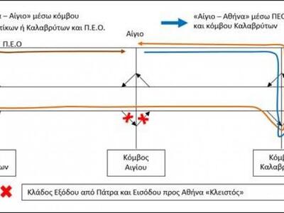 - Η κυκλοφορία με κατεύθυνση από Αίγιο προς Αθήνα θα εξυπηρετείται μέσω της ΠΕΟ και εν συνεχεία θα εισέρχεται από τον κλάδο εισόδου του Κόμβου Καλαβρύτων