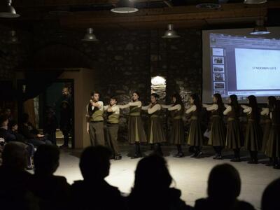 Εμπνευσμένοι από την γλώσσα της συγγραφέως που ο εκκλησιαστικός λόγος και έκφραση αποκτούν ένα ιδιαίτερο νόημα αναδεικνύοντας τα ιδανικά των αγώνων του λαού μας ενάντια στην τυραννία και τον φασισμό παίζουμε μουσική, χορεύουμε, απαγγέλλουμε, ψάλλουμε, μεταφράζουμε αποδίδοντας και μεις με το δικό μας τρόπο φόρο τιμής στην θυσία των ηρώων του Πολυτεχνείου.