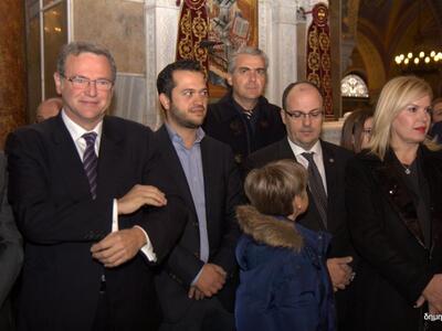 Στην συνέχεια τελέστηκε δοξολογία, στην οποία χοροστάτησε ο μητροπολίτης Πατρών Χρυσόστομος, συμπαραστατούμενος από εννέα αρχιερείς, ενώ παρέστησαν, μεταξύ άλλων, ο πρόεδρος της Ένωσης Κεντρώων Βασίλης Λεβέντης, οι βουλευτές Αχαΐας, Κώστας Σπαρτινός, Ανδρέας Ριζούλης, Ανδρέας Κατσανιώτης, Θεόδωρος Παπαθεοδώρου, Ιάσων Φωτήλας και Νίκος Νικολόπουλος, ο δήμαρχος Πατρέων Κώστας Πελετίδης, ο περιφερειάρχης Δυτικής Ελλάδας Απόστολος Κατσιφάρας, εκπρόσωποι αρχών και φορέων κ.α.