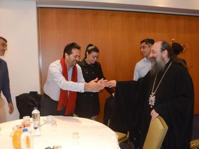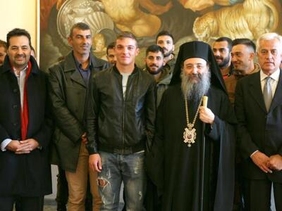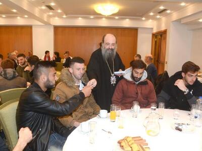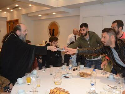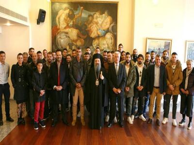 Λίγη ώρα αργότερα τους ποδοσφαιριστές της ομάδας δεξιώθηκε σε αίθουσα κεντρικού ξενοδοχείου της Πάτρας ο Σεβασμιότατος Μητροπολίτης Πατρών κ.κ. Χρυσόστομος.