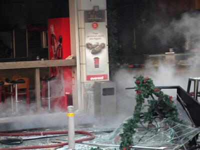 Όλα δείχνουν ότι πρόκειται για έκρηξη σε φιάλη προπανίου ή αερίου και σημειώθηκε στο υπόγειο όπου και βρίσκεται σχετική εγκατάσταση.Προς το παρόν δεν υπάρχουν πληροφορίες για θύματα, ωστόσο υπάρχει μεγάλος φόβος καθώς στον χώρο υπάρχει η κουζίνα του καταστήματος.