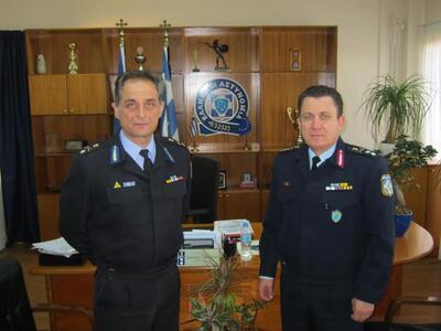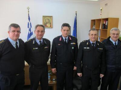 Ο Διοικητής της Περιφερειακής Πυροσβεστικής Διοίκησης Δυτικής Ελλάδας, Αρχιπύραρχος Κωνσταντίνος Κυριακόπουλος με αφορμή την πρόσφατη ανάληψη των καθηκόντων του, επισκέφθηκε σήμερα (31-1-2017) το πρωί, τη Γενική Περιφερειακή Αστυνομική Διεύθυνση Δυτικής Ελλάδας, όπου συναντήθηκε με τον Γενικό Περιφερειακό Αστυνομικό Διευθυντή, Υποστράτηγο Αδαμάντιο Μητρόπουλο.