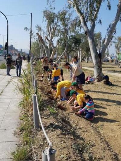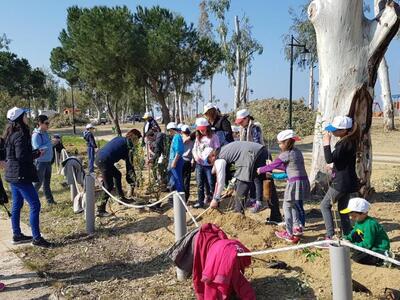 Παράλληλα δεκάδες ομάδες εθελοντών, που αποτελούνταν από 10 έως 20 άτομα, μικροί και μεγάλοι, δενδροφύτευαν σε όλο το μήκος και το πλάτος του Νότιου Πάρκου.