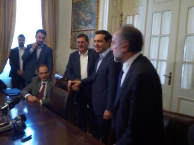 "Το Δήμαρχο Πατρέων, Κώστα Πελετίδη, επισκέφτηκε σήμερα στο Δημαρχείο, ο Πρωθυπουργός, κ. Αλέξης Τσίπρας και είχε συνάντηση μαζί του.Κατά τη διάρκεια της συνάντησης ο Δήμαρχος ενημέρωσε τον Πρωθυπουργό για τα σοβαρά προβλήματα που αντιμετωπίζει ο λαός της Πάτρας και αναφέρθηκε στις διεκδικήσεις και τα αιτήματα του Δήμου, όπως έχουν αποτυπωθεί στις αποφάσεις του Δημοτικού Συμβουλίου.