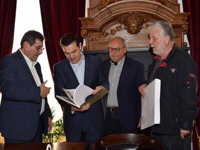 Μετά το πέρας της συνάντησης ο Δήμαρχος χάρισε στον Πρωθυπουργό το λεύκωμα «Χαρτών Μνήμες, Πάτρα 1831 – 1943» και μια λιθογραφία του Δημοτικού Θεάτρου της Πάτρας.