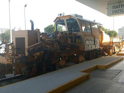 Πρόκειται για ένα ρομπότ που κινείται σε ράγες. Το είδαμε το πρωί της Πέμπτης 27 Απριλίου, να κινείται στις γραμμές του προαστιακού. Το κίτρινο χρώμα του και τα αμέτρητα μηχανικά του μέρη τράβηξαν τα βλέματα όλων όσοι κινούνταν στην παραλιακή ζώνη της Πάτρας και την Ακτή Δυμαίων.