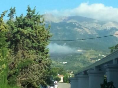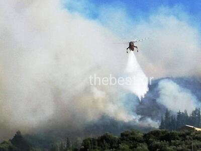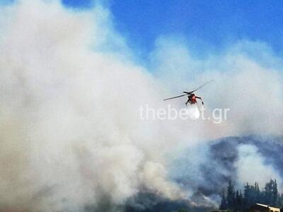 Οι ισχυροί νοτιοδυτικοί άνεμοι δυσχεραίνουν επικίνδυνα την κατάσταση και δυσκολεύουν ιδιαίτερα το έργο των πυροσβεστών