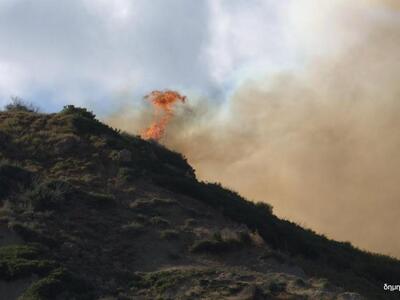 17.57 Οι φλόγες καίνε χαμηλή βλάστηση στην περιοχή ενώ πολύ κοντά στις εστίες της φωτιάς βρίσκονται κατοικίες.
