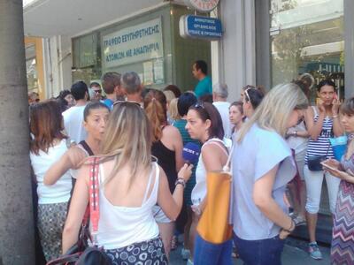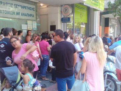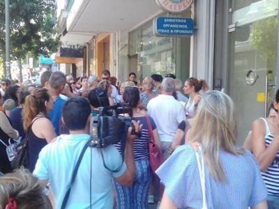Όσο περνάει η ώρα μάλιστα δημιουργούνται και εντάσεις με τον κόσμο να έχει χάσει την υπομονή του από τις ώρες αναμονής και τη ζέστη. Η εξυπηρέτηση γίνεται με χαρτάκι και σειρά προτεραιότητας.