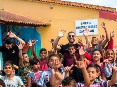 Όπως και κατά τη διάρκεια της προηγούμενης επίσκεψης, οι μικροί μαθητές του Δημοτικού Σχολείου Σαγεΐκων ήταν ιδιαίτερα εκδηλώτικοί και αγκάλιασαν τους παίκτες της ομάδας μας.