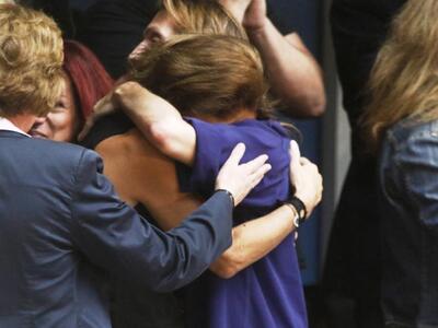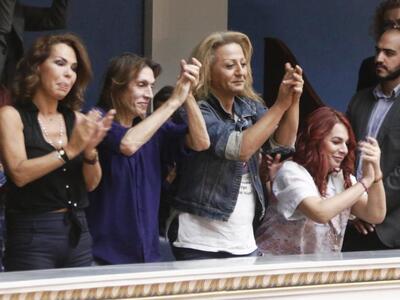Γνωστοί εκπρόσωποι της ΛΟΑΤΚΙ κοινότητας παρακολουθούσαν από τα θεωρεία της Βουλής τη συνεδρίαση του Σώματος, όπου ψηφίστηκε το μεσημέρι της Τρίτης, ο νόμος για τη νομική αναγνώριση φύλου. Η απόφαση του ελληνικού κοινοβουλίου έγινε δεκτή από τους ΛΟΑΤΚΙ με χειροκροτήματα, αγκαλιές και φιλιά, όπως φαίνεται και στις φωτογραφίες.