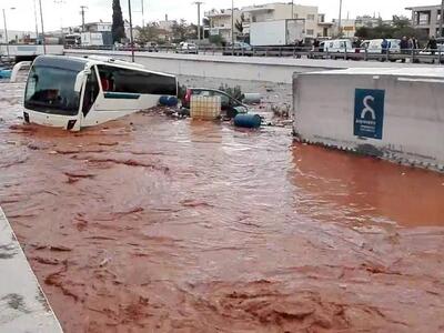 Εφιαλτικές στιγμές έζησαν οι επιβάτες λεωφορείου του Υπεραστικού ΚΤΕΛ Αχαΐας το οποίο εγκλωβίστηκε λόγω των πλημμυρών στο ύψος του Θριασίου. Το λεωφορείο μετατράπησε σε βάρκα όπως μπορείτε να δείτε και στο σχετικό βίντεο.