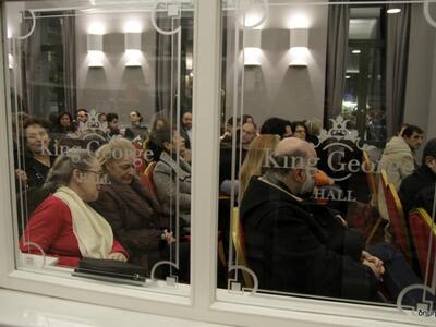 Ο ξεχωριστός χώρος του King George Ηall αν και μεγάλος αποδείχτηκε μικρός για την παρουσίαση του νέου βιβλίου του π. Χαράλαμπου Παπαδόπουλου με τίτλο «Ένας Θεός που έπαιζε κρυφτό – Η «σιωπή» του Θεού στις δοκιμασίες των ανθρώπων», το οποίο κυκλοφορεί από τις εκδόσεις «Αρμός».