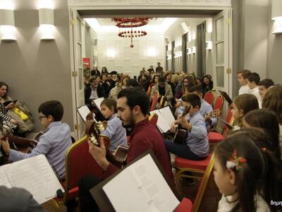 Μικροί βιρτουόζοι κιθαριστές και μικροί, μικρές  χορωδοί ερμήνευσαν χριστουγεννιάτικα τραγούδια, θυμίζοντας στους ενήλικες την παιδική αθωότητα και βάζοντας το κοινό στο κλίμα των Χριστουγέννων.