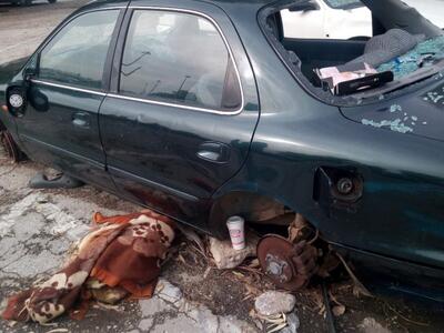 Ορισμένοι επιτήδειοι έχουν αφαιρέσει από τα αυτοκίνητα σχεδόν ότι μπορεί να αξιοποιηθεί από τις ρόδες τους μέχρι και τους προφυλαχτήρες αλλά κι άλλα μεταλλικά και πλαστικά αντικείμενα. Τα τζάμια τους είναι σπασμένα το εσωτερικό τους κατάβρόμικο αποπνέοντας τα σχετικά… αρώματα.