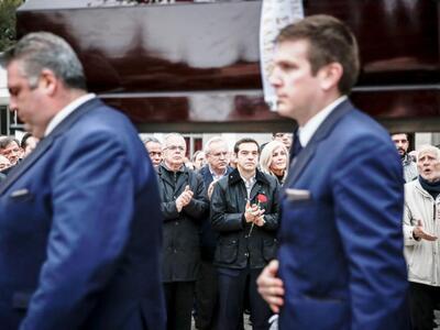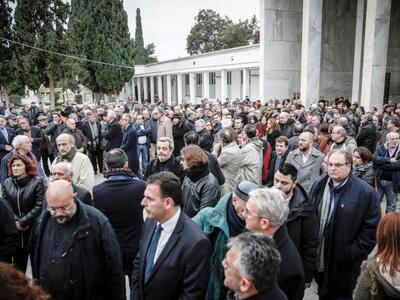 Πλήθος κόσμου λέει αυτή την ώρα το «ύστατο χαίρε» στο δημοσιογράφο Θεοδωρή Μιχόπουλο, ο οποίος έφυγε από τη ζωή μετά από ανακοπή καρδιάς, σε ηλικία 66 ετών. Στην κηδεία του, που γίνεται από το Α’ Νεκροταφείο Αθηνών, παρίσταται ο πρωθυπουργός Αλέξης Τσίπρας, εμφανώς συγκινημένος από τη ξαφνική απώλεια ενός από τους πλέον στενούς συνεργάτες του.