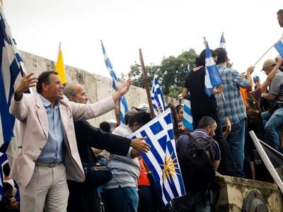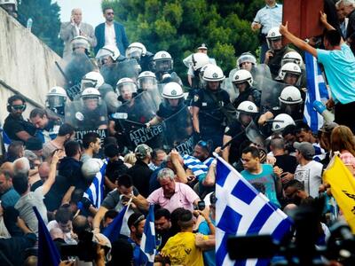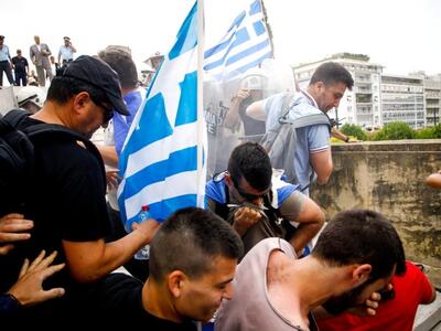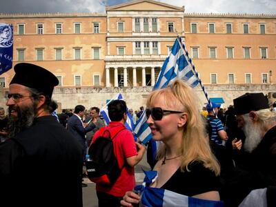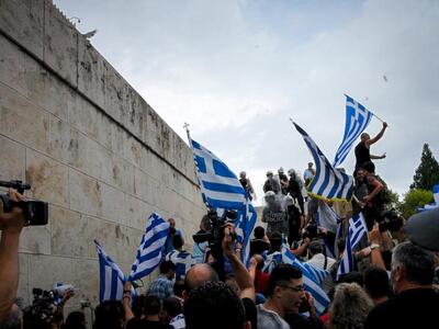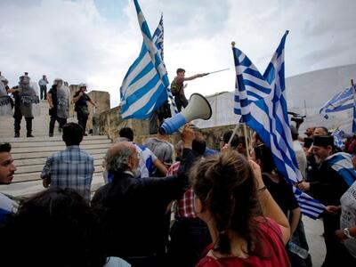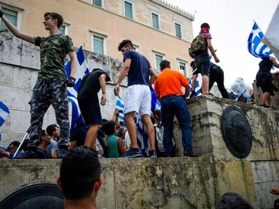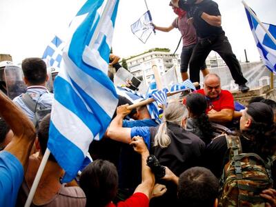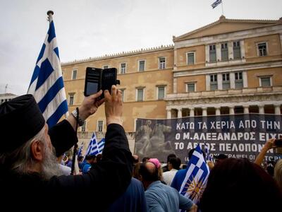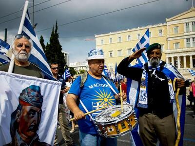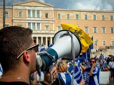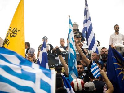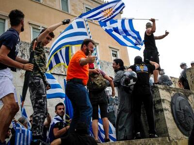 Την αντίθεσή τους με τη συμφωνία μεταξύ Ελλάδας και πρώην Γιουγκοσλαβικής Δημοκρατίας της Μακεδονίας για το ονοματολογικό της γειτονικής χώρας, εκφράζουν συγκεντρωμένοι αυτή την ώρα έξω από το ελληνικό κοινοβούλιο. Οι συγκεντρωμένοι κρατούν ελληνικές σημαίες, αλλά και σημαίες με τον ήλιο της Βεργίνας.