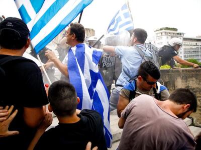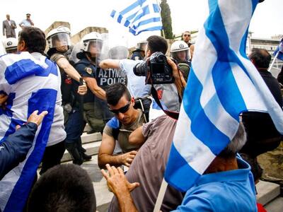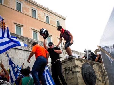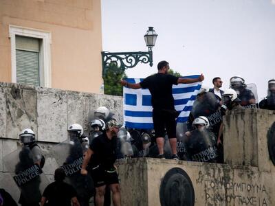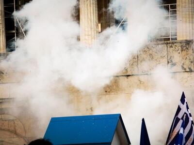 Νέα επεισόδια μικρής έκτασης σημειώθηκαν πριν από λίγο έξω από τη Βουλή. Ομάδα διαδηλωτών προσπάθησε να προσεγγίσει, από τη δεξιά πλευρά εισόδου, το κτίριο του Κοινοβουλίου, με τις αστυνομικές δυνάμεις να τους απωθούν με τη ρίψη δακρυγόνων. Από τα επεισόδια τραυματίστηκε ελαφρώς ένας διαδηλωτής.