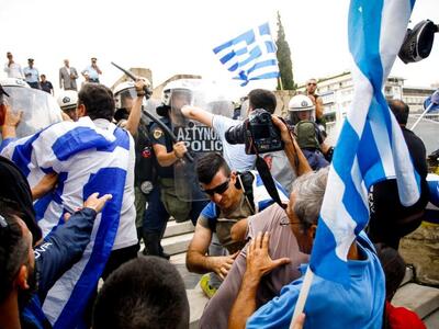 Αυτή τη στιγμή οι διαδηλωτές παραμένουν στην πλατεία Συντάγματος κρατώντας ελληνικές σημαίες και φωνάζοντας συνθήματα κατά της συμφωνίας για το ονοματολογικό.