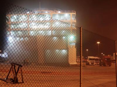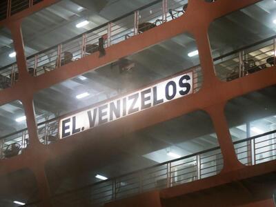 Συνεχίζει να καίει η φωτιά που έχει ξεσπάσει στο γκαράζ του επιβατηγού οχηματαγωγού πλοίου «Ελευθέριος Βενιζέλος», από το βράδυ της Τρίτης. Το πλοίο βρίσκεται δεμένο στην ακτή Ξαβερίου, ωστόσο έχει πάρει μεγάλη κλίση.