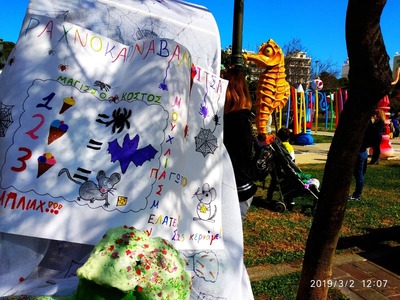Από τις 10.30 έως τις 14.00 το μεσημέρι φορούν τα γιορτινά τους και σε ένα καρναβαλικό σκηνικό από στοιχεία και κατασκευές του Καρναβαλικού Εργαστηρίου, που θα πλαισιώσουν τα παιχνίδια.